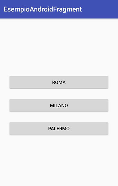 Ciò lo faremo nel metodo cambiaFragment che risponde al click su uno dei tre pulsanti presenti nel primo Fragment. Questo è il codice completo dell’Activity.
