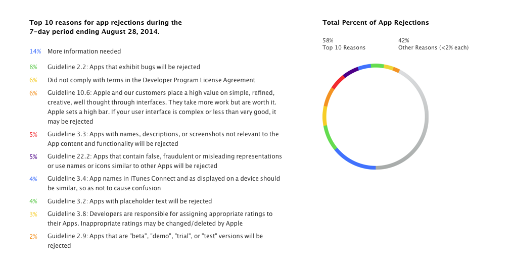 Per maggiori dettagli vi rimandiamo alla sezione apposita sul sito Apple, dedicata appunto a questo particolare tema: App Review Guidelines and Resources