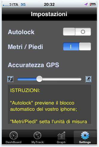 Il senso di marcia (solo iPhone 3G) è legato allo spostamento rispetto alla precedente posizione. Quanti più campioni farà l’applicazione, tanto più accurati saranno i valori restituiti!