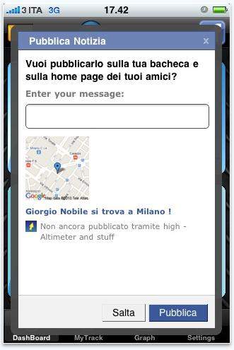 - Supporto per Facebook e posta elettronica per l’esportazione della vostra posizione in tempo reale, con allegato un report dettagliato ed una mappa (richiede la connettività WiFi o 3g)