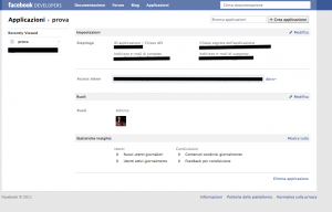 L’applicazione su Facebook è pronta, l’unica cosa che ci servirà è la “chiave API” generata, che troviamo nel pannello delle nostre app.