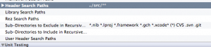 Portiamoci ora su “Build setting” del nostro progetto e cerchiamo la sezione “Search Path”. Facciamo doppio click su “Header Search Path”, quindi clicchiamo sul “+” e aggiungiamo questa stringa: