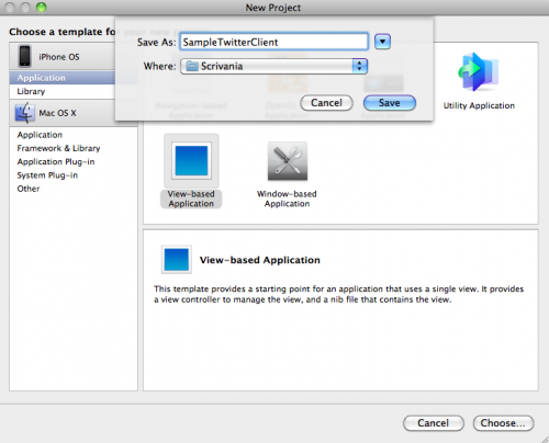 Iniziamo creando un nuovo progetto di tipo “View-based application” e chiamiamolo “SampleTwitterClient”: