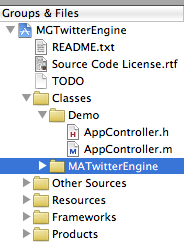 A noi interessa la cartella “MGTwitterEngine” che trovate all’interno di “Classes”: