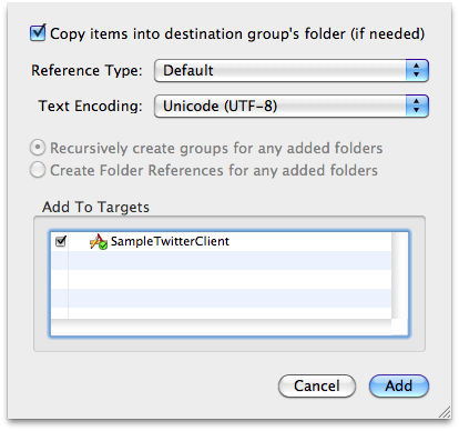 Prima di fare qualsiasi altra cosa, inseriamo la libreria MGTwitterEngine, che ci permetterà di interagire con Twitter. Scaricate l’ultima versione da questa repository SVN (trovate qui una guida su come fare), oppure scaricate la versione 1.08 che vi mettiamo noi a disposizione.