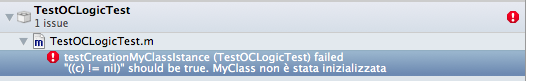 STAssertNotNil(c, @"MyClass non è stata inizializzata");
