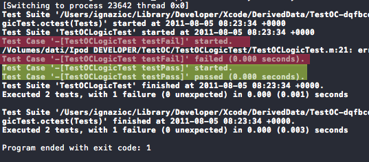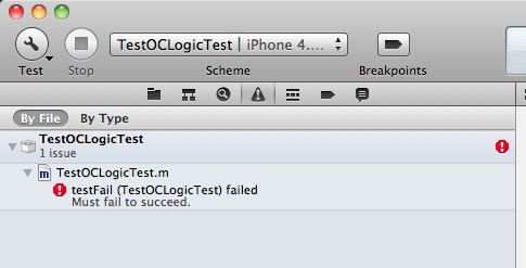 Cosa è successo? Xcode ha effettuato il test del nostro codice, nello specifico ha eseguito il metodo “testFail” della classe “TestOCLogicTest” che ha come unico scopo quello di far fallire il test.