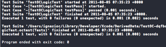 Cosa succederà eseguendo il test? Apparentemente nulla, xcode dirà “compilazione andata a buon fine” senza ulteriori dettagli, però se andiamo a guardare i messaggi di log nella console vedremo una serie di informazioni molto utili.