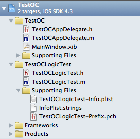 dove si può notare che xCode ha già creato per noi sia i file necessari per la compilazione, sia una classe “TestOCLogicTest” dove poter scrivere i nostri test.